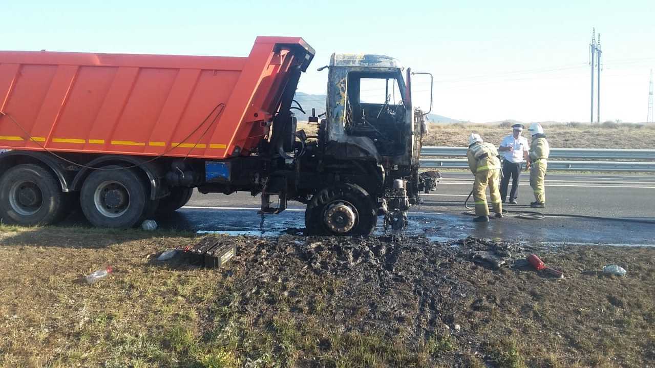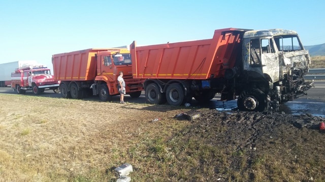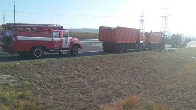 Министр чрезвычайных ситуаций Республики Крым Сергей Шахов сообщил, что по прибытии пожарных стало известно, что во время движения загорелся грузовой автомобиль «КАМАЗ». Крымские огнеборцы ликвидировали огонь в течение 20 минут. К сожалению, кабина автомобиля была уничтожена огнем практически полностью. Пострадавших нет. Причины устанавливают эксперты.