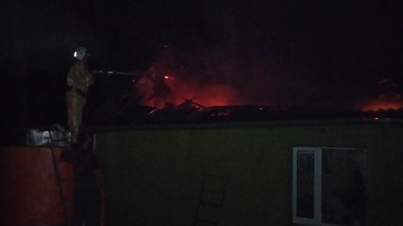 По прибытии пожарными было установлено, что на территории частного домовладения горит кровля одноэтажного строения. Обнаружив очаг, огнеборцы оперативно проложили рукавные линии и приступили к ликвидации огня. В течение часа пожар был локализован и ликвидирован. Огнем уничтожена кровля, площадь составила 120 кв.м. Пострадавших нет. Причины устанавливают эксперты.